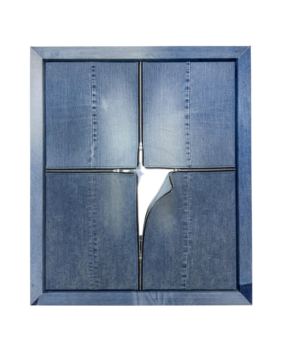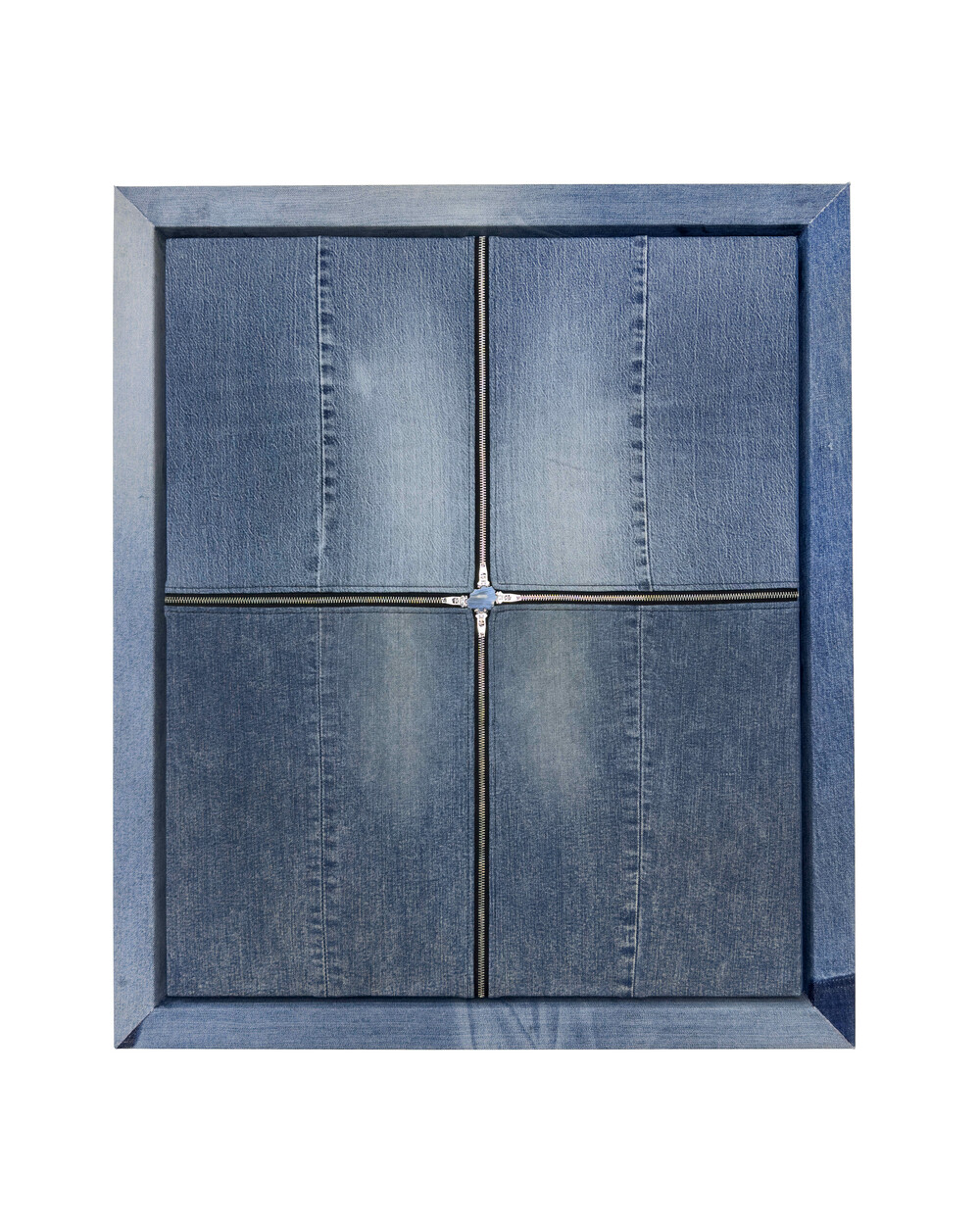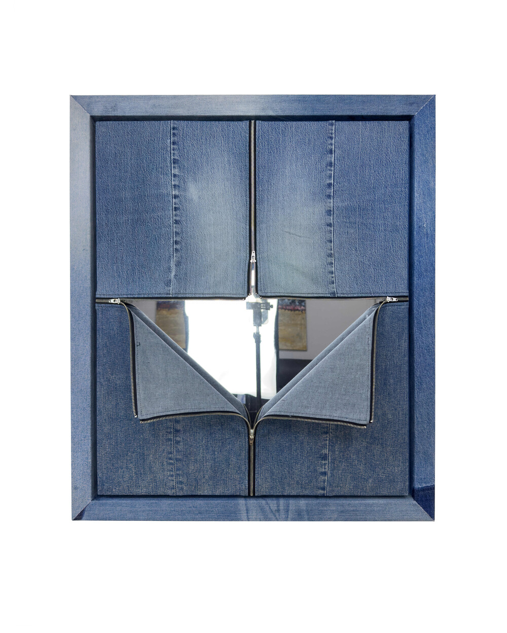 알루미늄 캔버스, 데님 씌운 액자, 중고 데님 의류, 거울, 니켈 지퍼 5호